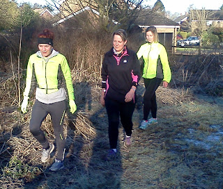 Today was a very cold and icy morning but a lovely blue sky and sunshine made it a pleasure to be outside. A hardy group of 'Run England Athletes' (including new member Liz) met at 9.00am at the Riverside Car Park .